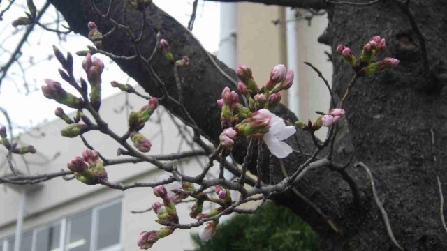 3月23日。本校の桜のつぼみが大きく膨らみ始めています。すでに、いくつかの桜が咲き始めました。