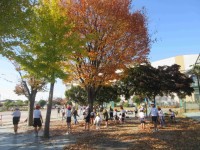 11月17日。校庭の木々の葉にも色が付き、青空と紅葉のコントラストが美しい季節に...