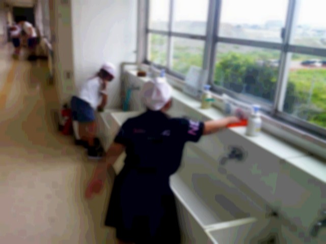 9月8日から10月10日までの1ヶ月は、縦割り班で協力して掃除をしています。高学年が低学年にやり方を教えながら、取り組んでいます。