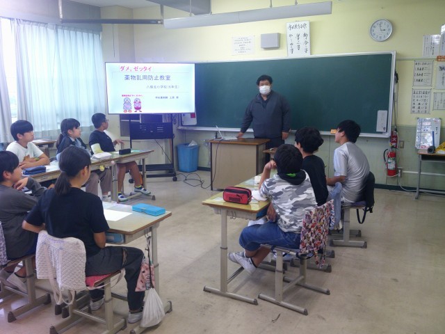 薬物乱用防止教室のために、学校薬剤師の土居努先生がいらっしゃいました。身近な薬や危険な薬のことまで、話し合い活動を取り入れながら、有意義に学ぶことができました。ご指導ありがとうございました。
