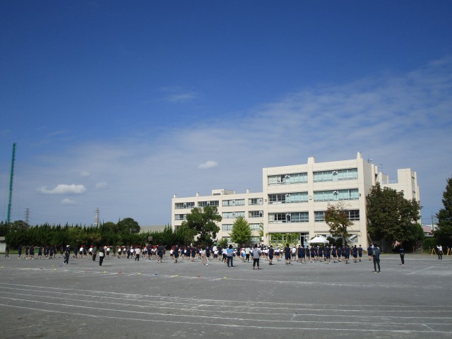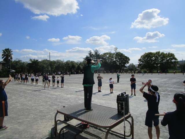 秋晴れのもと、小中合同で運動会練習を行いました。開会式の練習や八條エアロを行い。最後は八潮音頭保存会のみなさまから踊り方のご指導をいただきました。ありがとうございました。