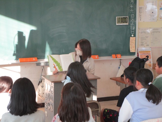 図書ボランティアによる読み聞かせがありました。今回から新しく参加いただいたボランティアの方もいらっしゃって、とてもありがたいです。