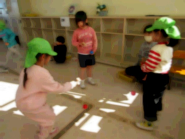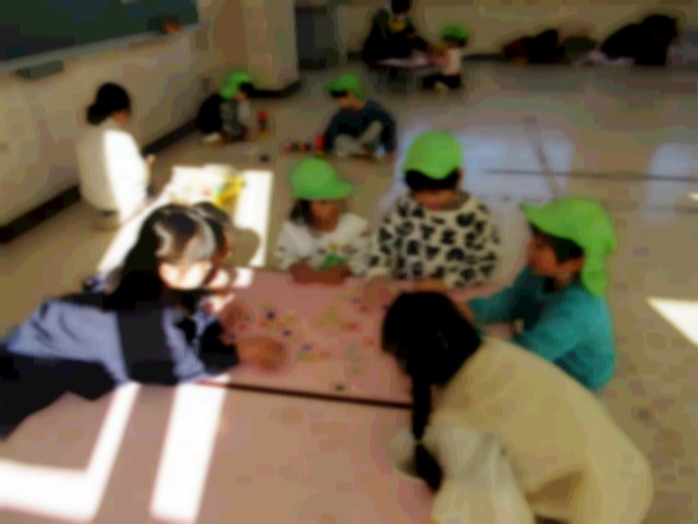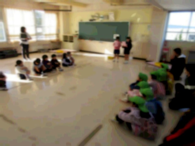近くの八条保育所の園児と1年生が昔遊びをしながら交流をしました。