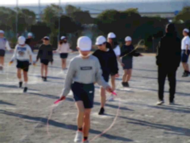 今日の全校運動なわとびは、時間跳びでした。1年生は1分、2年生は2分・・・と学年ごとに目標時間が決まっています!さあ、目標達成に向けて頑張ろう!!
