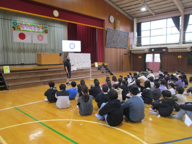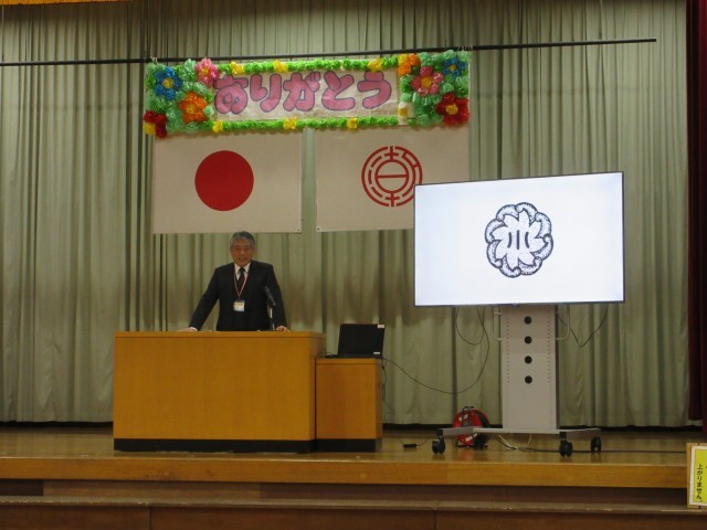 3月の全校朝会では、校長先生から学校の校章についてお話がありました。形や色の意味など深くしれましたね。