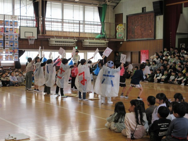 1年生から5年生が、それぞれ感謝の気持ちを込めてクイズを出したり歌を歌ったりしました。