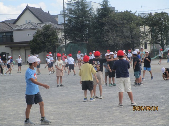 24日(水)は、昼休みも校庭で遊ぶことができました。心地よい風が吹いていて、子供たちは気持ちよさそうに遊びを楽しんでいました。ドッジボールや鬼ごっこをクラスで行うなど、笑顔が溢れる時間を過ごしました。