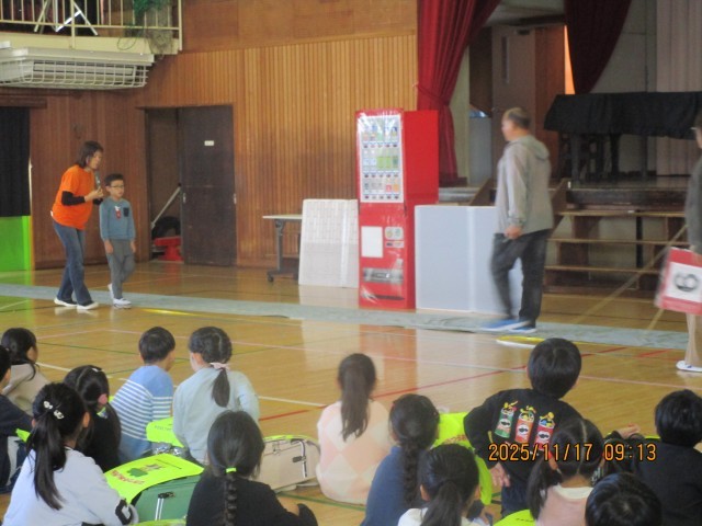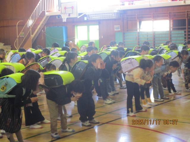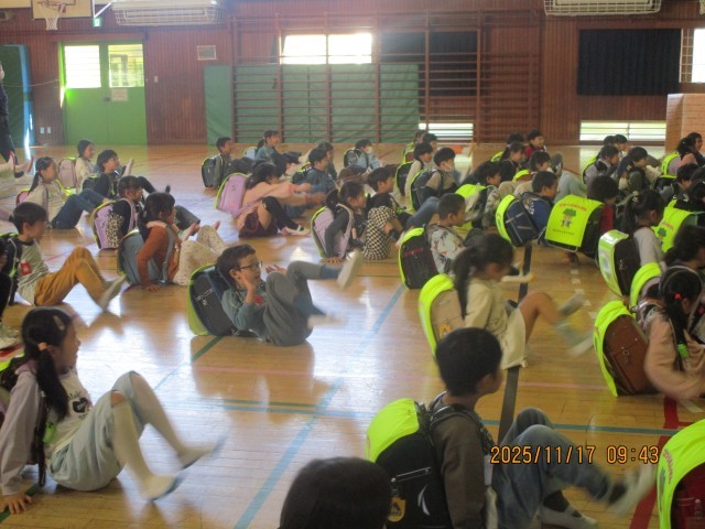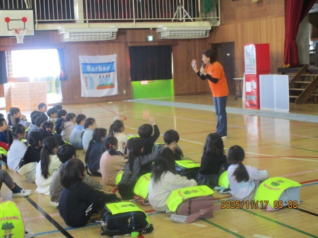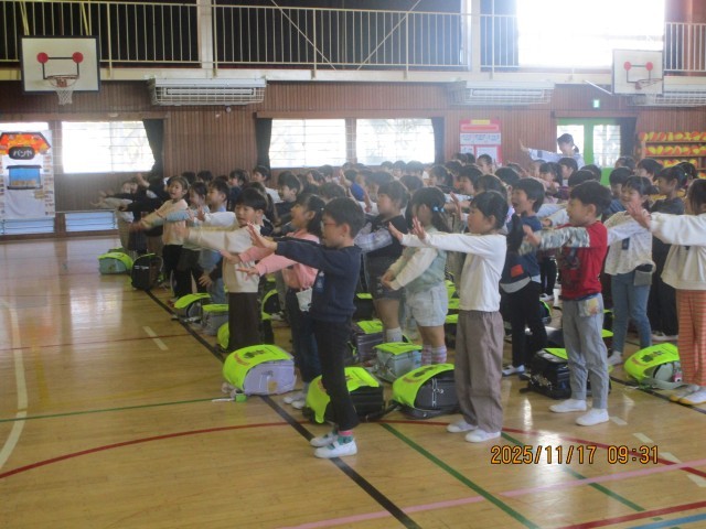 17日(月)、2校時1年生、3校時2年生が、こども応援団結の方を講師にお招きし、体験型安全教室を行いました。登下校の際などに不審者から身を守る方法について、頭や体を使って学習しました。あやしい人は、「は・ち・み・つ・じ・ま・ん」の動きをすることを教わりました。「は」はなしかけてくる人、「ち」ちかづいてくる人、「み」みつめてくる人、「つ」ついてくる人、「じ・ま」じっとまっている人、「ん」そういう人には、ん?と注意が必要です。大声を出す、防犯ブザーを鳴らす、20m走って逃げるなど、体験を通してさまざまなことを学びました。学んだことを活かして、不審な人から身を守れるようにしていきましょう。