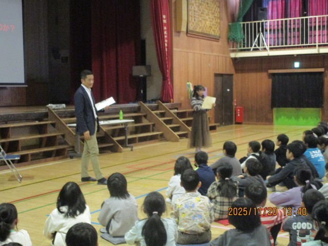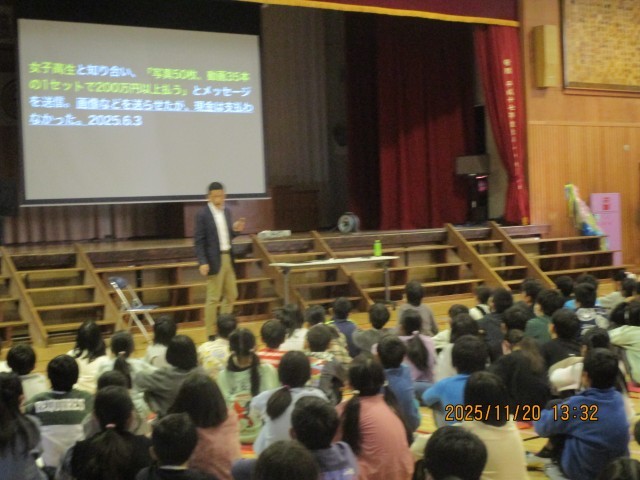 20日(木)、4〜6年生を対象に、中学校の元校長先生を講師にお招きし、ネットモラル教室を行いました。「狙われているのは・・・」〜犯罪に巻き込まれないためにはどうしたらよいかを学ぶ〜をテーマにお話をいただきました。狙われやすいのは、普通の子どもで、経験が浅いので、加害者にとってだましやすいからなど、テーマに沿った実践的なお話をたくさんしていただきました。学んだことを今後の生活にいかしていけるといいですね。