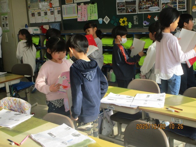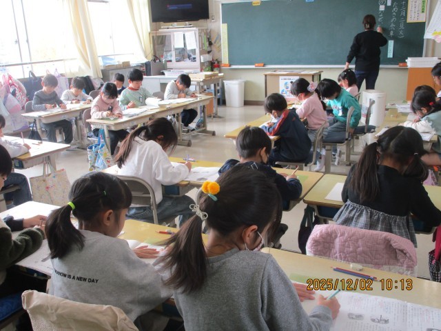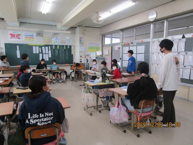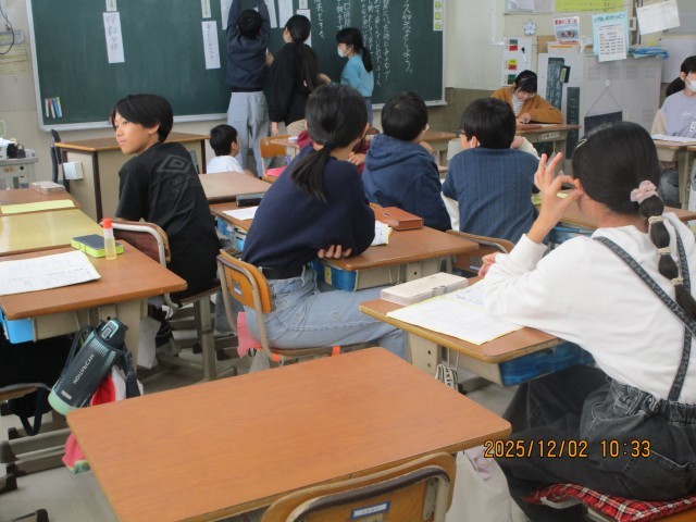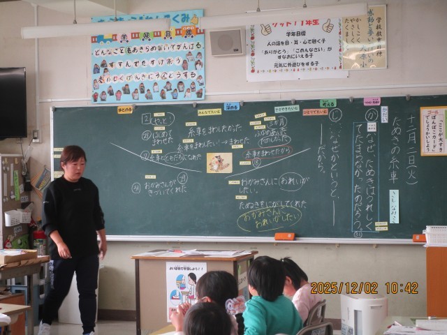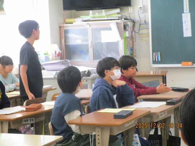 2日(火)、1年生国語、6年生特別活動で授業公開がありました。1年生は、たぬきの糸車の単元で、「なぜ、たぬきはうれしくてtまらなかったのだろうか。」という課題について考え、意見を伝え合い、一生懸命取り組む姿が見られました。6年生は、「クラス祭をしよう」という議題で、話し合いをしました。活発な意見がでて、楽しい雰囲気で話し合いが進められていました。授業公開を通して、子供たちの活躍する姿がたくさん見られました。