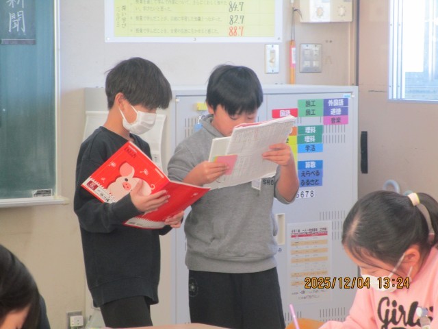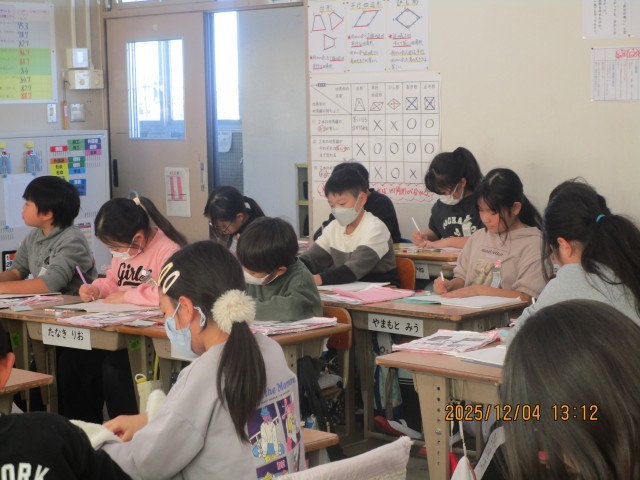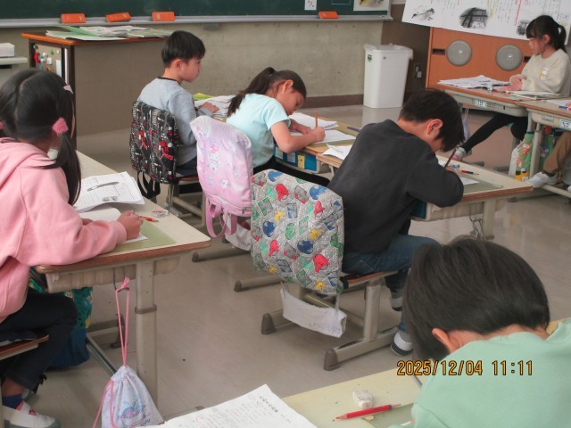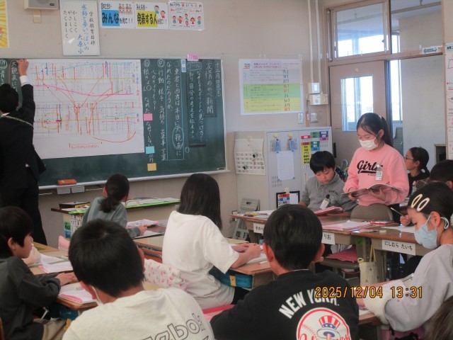 4日(木)、第3回校内授業研究会がありました。1年生では、国語「たぬきの糸車」を題材に「なぜ、たぬきはうれしくてたまらなかったのか。」という課題について考えました。4年生では、国語「友情のかべ新聞」を題材に「東君と西君は本当に大親友になれたのだろうか。」という課題について考えました。1・4年生とも、とても意欲的に授業に取り組み、フリートーク等で学び合い考えを深めることができました。大変すばらしい授業でした。