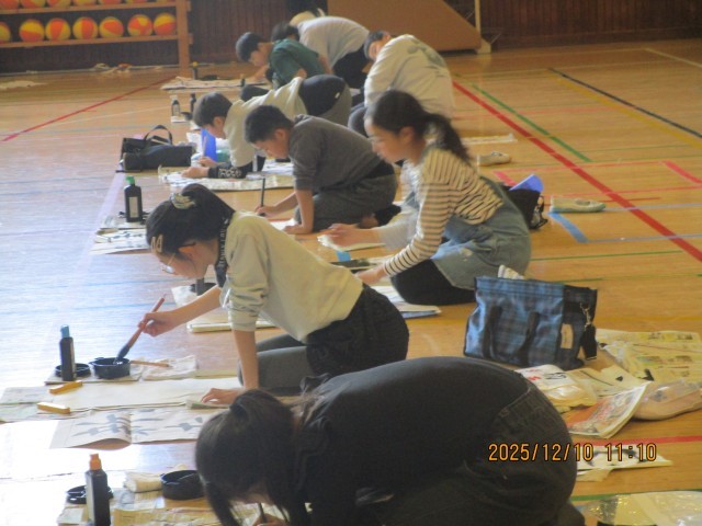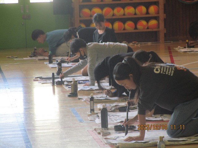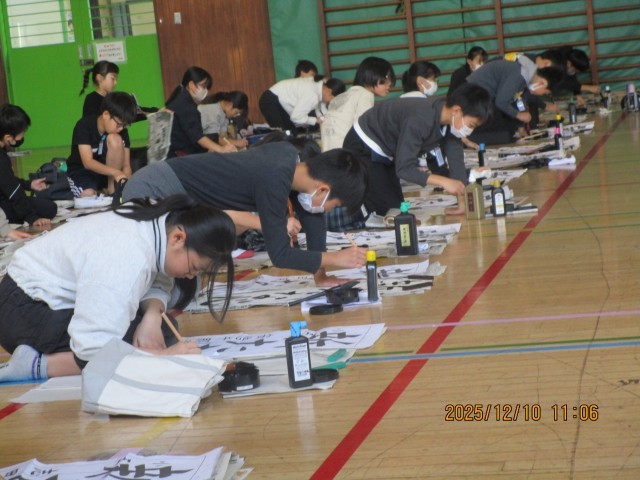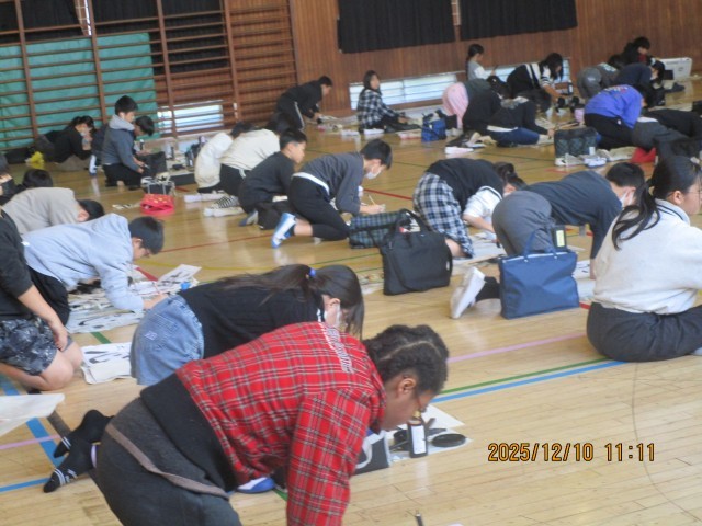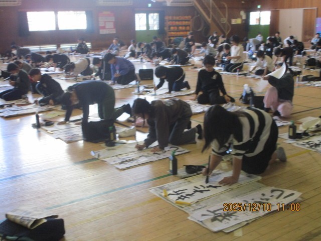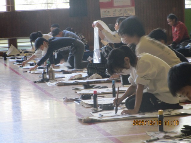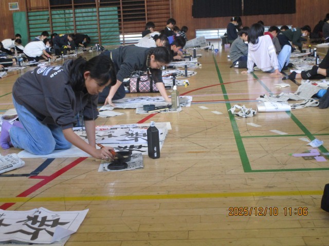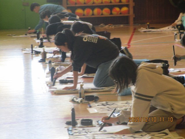 5年生の様子です。「新たな心」という文字を書きました。ホームページ上でクリックしていただくと、4枚目以降の写真がご覧いただけます。