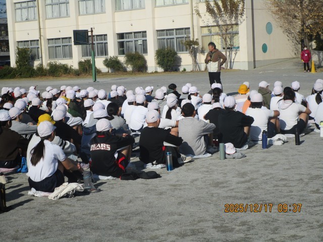 17日(水)、延期となった持久走大会が晴天のもと行われました。子供たちは練習の成果を発揮し、ゴールを目指して一生懸命走りきりました。参加者全員が見事完走することができました。子供たちの頑張りを応援してくださった保護者や地域の皆様、安全に走れるよう支えてくださった協力ボランティア、見守り隊の皆様に心より感謝申し上げます。一生懸命走る仲間に「がんばれ~」と応援していた大原小の子供たちの姿にも心打たれました。閉会式では、校長先生から頑張った子供たちへ激励の言葉がかけられました。持久走大会で学んだことを今後の生活に活かしていけるといいですね。