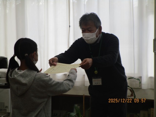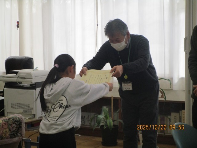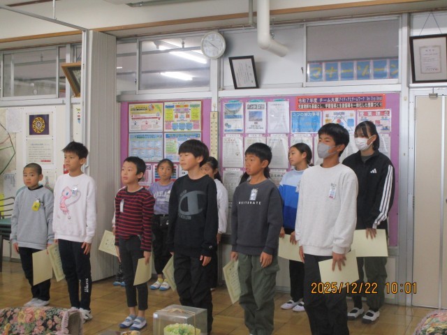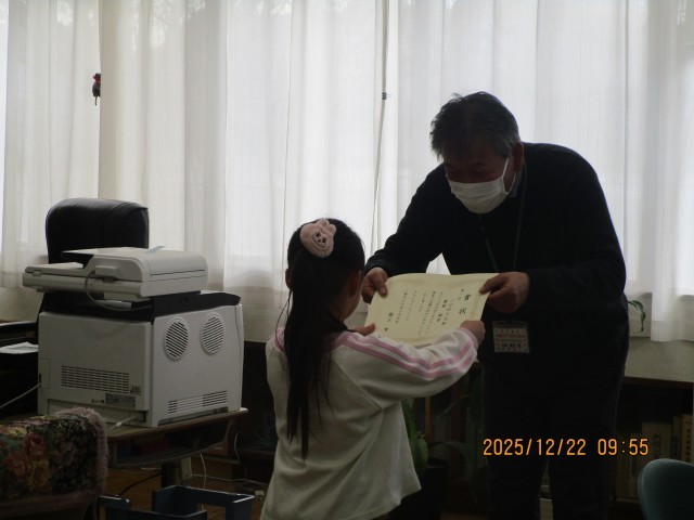 22日(月)、業間休みに校長室で持久走大会の表彰がありました。表彰は、全学年男女1位の児童が校長先生から賞状が授与されました。これまでの努力が成果として表れてよかったですね。ホームページ上でクリックしていただくと、4枚目以降の写真がご覧いただけます。