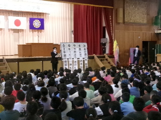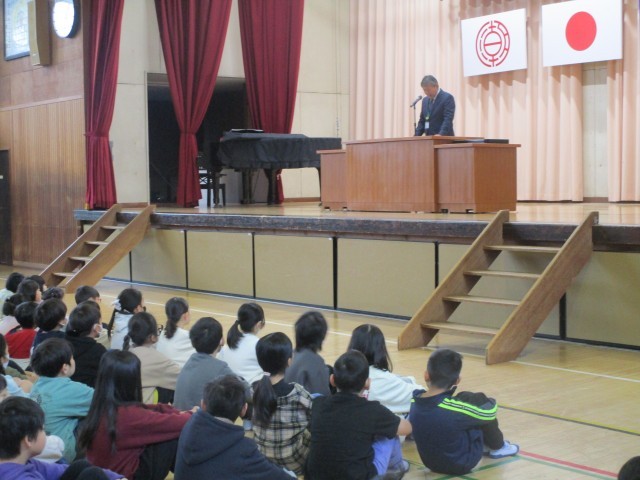 24日(水)2学期終業式がありました。校長先生からは、「ありがとう」がたくさん聞こえる冬休みについてお話がありました。クイズを交えながら「あたり前」だと思っていることが、実は「あたり前」ではない、そして、そのことに対して、素直に「ありがとう」と言える人はかっこいいと校長先生の思いをお話いただきました。その後、校歌斉唱、冬休みの過ごし方、安全について、表彰と続きました。明日から14日の冬休みに入ります。楽しく安全に過ごしてください。3学期元気に会えることを楽しみにしています。
