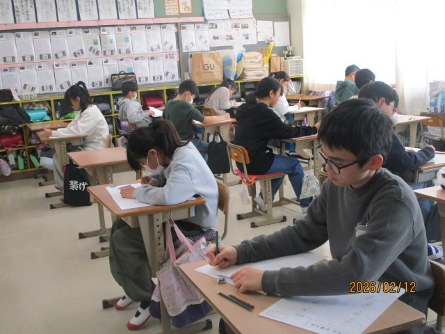 今週、全学年で計算大会が行われました。これは、今年度学習した計算問題に繰り返し取り組むことで、基礎学力の定着を図ることをねらいとしています。計算大会に向けて、宿題や授業等で取組を進めてきました。本番も整然とした中、一生懸命問題に取り組む姿が見られました。満点の児童には、満点賞が授与されます。これからも日々の積み重ねを大切にしてほしいです。ホームページ上でクリックしていただくと、4枚目以降の写真がご覧いただけます。