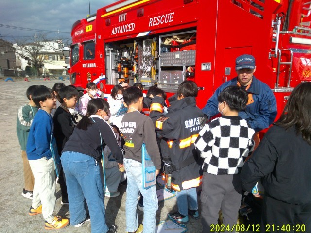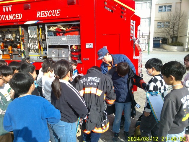 13日(金)、3年生が草加八潮消防署による出前授業を実施していただきました。車両見学・説明、けむり体験、消火訓練を各クラス20分ずつでローテーションで回りました。学習したことを実際に体験できて、貴重な時間を過ごすことができました。草加八潮消防署の皆様ありがとうございました。ホームページ上でクリックしていただくと、4枚目以降の写真がご覧いただけます。