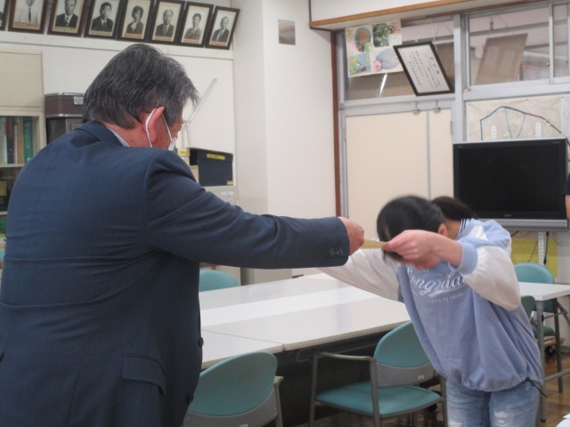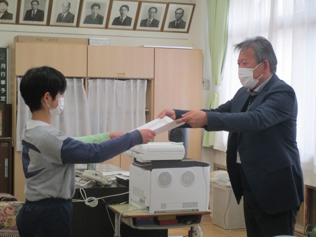 26日(木)、業間休みに3学期の表彰を行いました。代表児童は大変な立派な態度で、校長先生から賞状を受け取っていました。表彰会場では、頑張った児童へ温かい拍手が送られました。