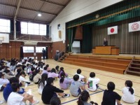 今日は全校朝会を行いました。校長先生からは人権についてのお話しがありました。子ど...