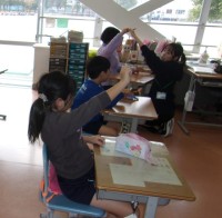 一年生の生活科の授業では、アサガオのつるを取っていました。取ったつるを使って、ク...