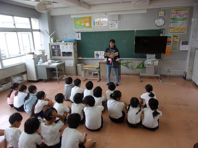 みんな楽しそうに読み聞かせを聞いていました。今週から読書月間に入りました。
