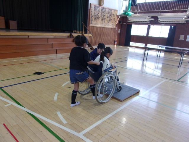 4年生は、社会福祉協議会の方をお招きし、車いす体験を行いました。乗っている人の立場になって、進むスピードや段差での声のかけ方など気をつけることができました。「みんながくらしやすい社会にするために何ができるか」子どもたちは真剣に学んでいます。