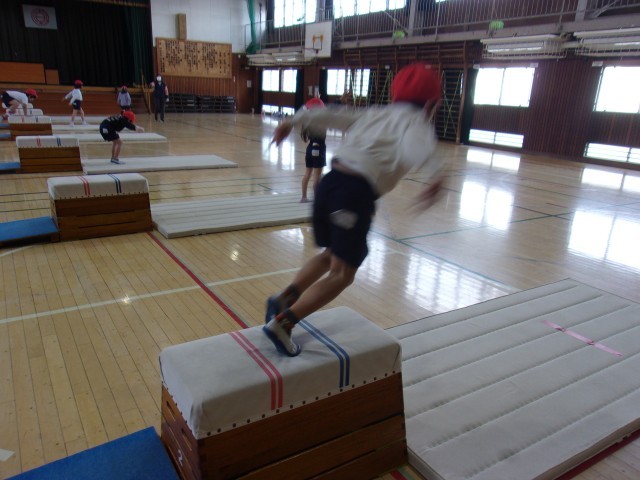 今日は一年生の体育の授業を参観しました。跳び箱運動に元気よく取り組んでいました。声をかけながら、安全に、確実に取り組むことができ、成長する姿が見られました。