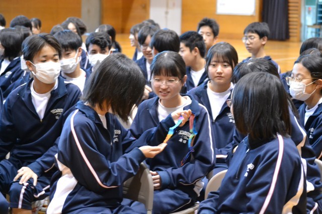 小林投手は、アテネオリンピックにも出場しており、銅メダルを獲得したときのメンバーでもあります。実際に、その時の銅メダルとユニフォームを持ってきてくださり、全生徒が手にとって見ることができました。
