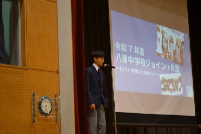 「ジョイント教室」とは、来年度八潮中学校に入学予定の小学6年生が集まり、中学校生活を学ぶためのものです。
