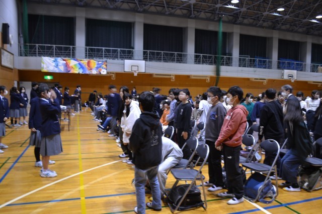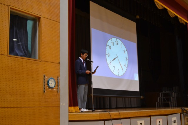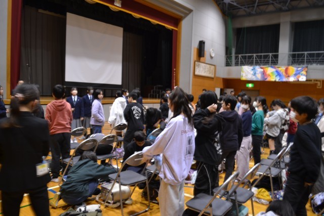 体育館では、八潮中学校の生徒会役員の生徒が歓迎のための企画を披露。中学校生活についてスライドを使いながら丁寧に話をしてくれました。