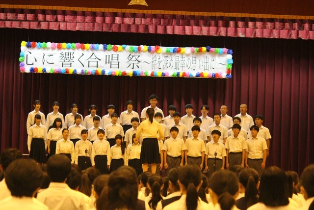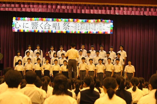 写真は、合唱祭での3年生の様子です。ホームページ上で写真をクリックしていただくと、4枚目以降の写真がご覧いただけます。