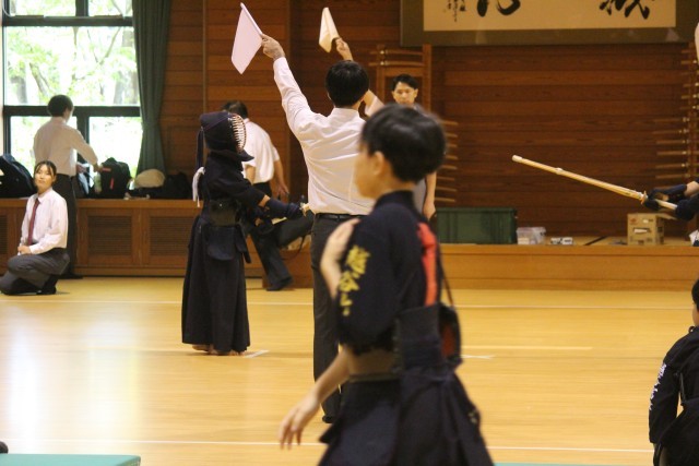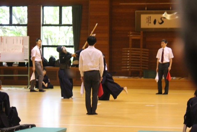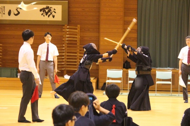 写真は、新人体育大会での剣道部の試合の様子です。ホームページ上で写真をクリックしていただくと、4枚目以降の写真がご覧いただけます。