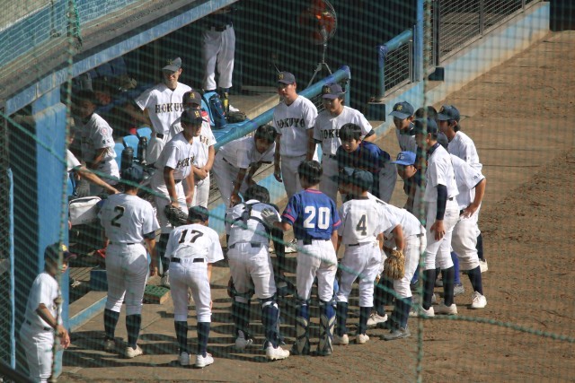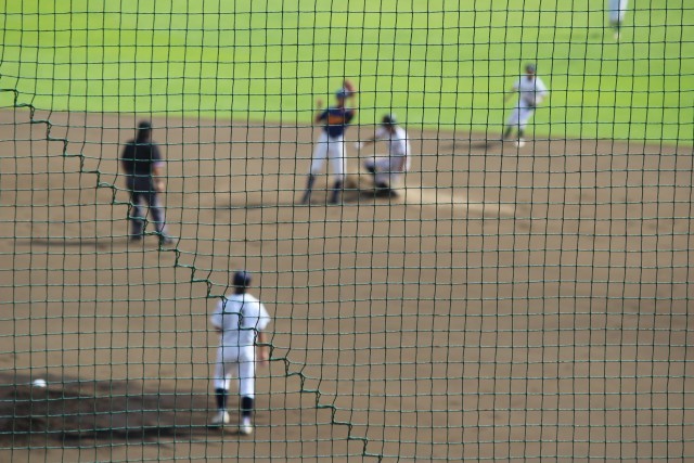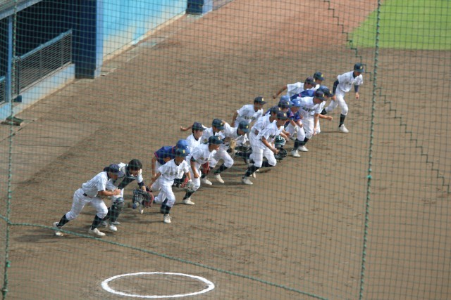写真は、新人体育大会での野球部の試合の様子です。ホームページ上で写真をクリックしていただくと、4枚目以降の写真がご覧いただけます。
