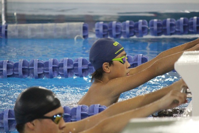 写真は、新人体育大会での水泳部の試合の様子です。ホームページ上で写真をクリックしていただくと、4枚目以降の写真がご覧いただけます。