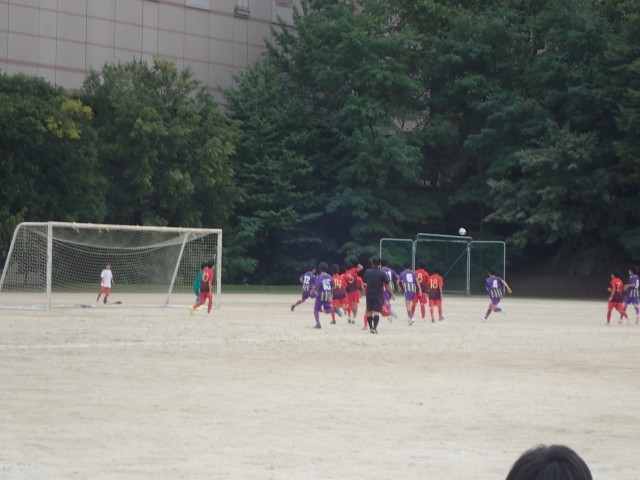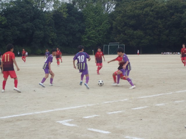 写真は、新人体育大会でのサッカー部の試合の様子です。ホームページ上で写真をクリックしていただくと、4枚目以降の写真がご覧いただけます。