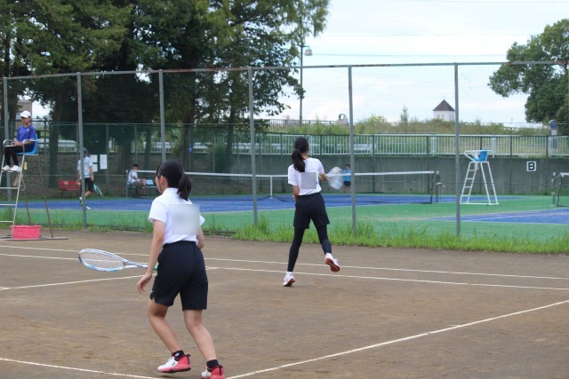 写真は、新人体育大会での女子ソフトテニス部の試合の様子です。ホームページ上で写真をクリックしていただくと、4枚目以降の写真がご覧いただけます。各会場を1名で巡視しているため、立ち会える試合の数に限りがあります。予めご了承下さい。
