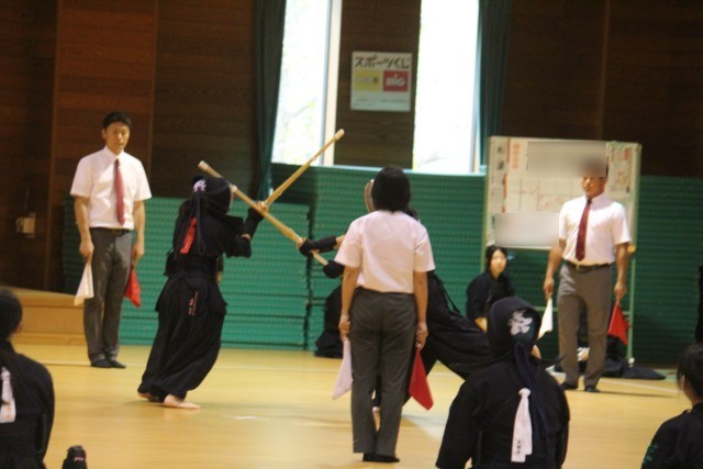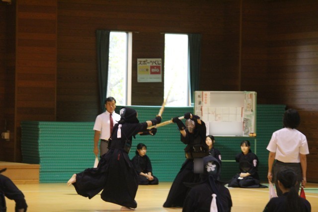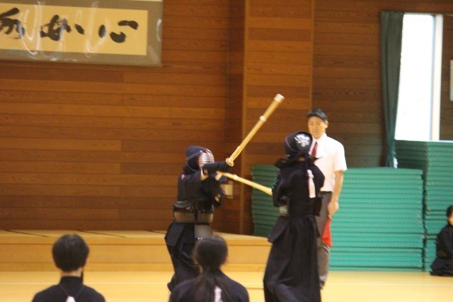 写真は、剣道部の試合での様子です。ホームページ上で写真をクリックすると、4枚目以降の写真が表示されます。各会場を1名で巡視しているため、立ち会える試合の数に限りがあります。予めご了承下さい。