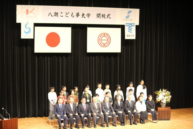 10月14日(火)に、「八潮子ども夢大学」の開校式が八潮メセナで行われました。「八潮こども夢大学」は、子どもたちの学習に対する興味・関心を喚起させ、知的好奇心や探究心をかき立てるため、さまざまな分野の大学等と連携し、学ぶことの意義や将来の夢を育むことを目的としています。この取組は、平成26年度から始まりました。開校式では、各大学の学長のご臨席を賜り、学長にあたる大山市長より参加生徒へ学生証が授与されました。
