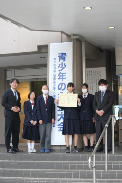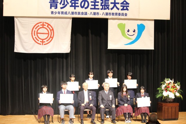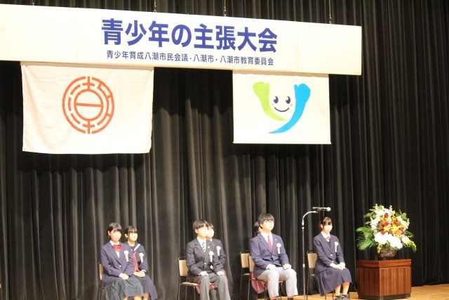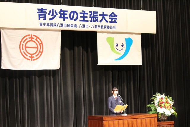 11月8日(土)に、青少年の主張大会が八潮市メセナで開催されました。今年で35回目を迎えました。市内中学校5校の代表生徒と八潮南高等学校2名の生徒が参加しました。自分自身の体験を元に、それを振り返り、素直な思いを表現したもの、社会問題に自分の視点で迫るもの、日常生活において直面する身近なテーマを見つめ直したもの等、実に多彩な視点から発表していました。発表者のみなさんが堂々と主張している姿がとても印象的でした。皆さん大変立派でした。