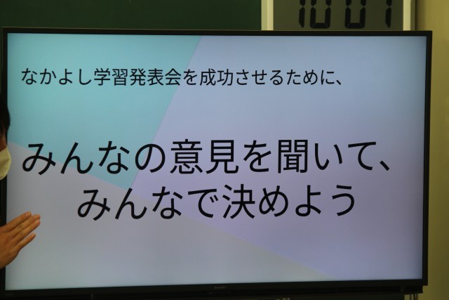 「明日に迫った『なかよし学習発表会』を成功させるために大切な事を考えよう」という題材でした。