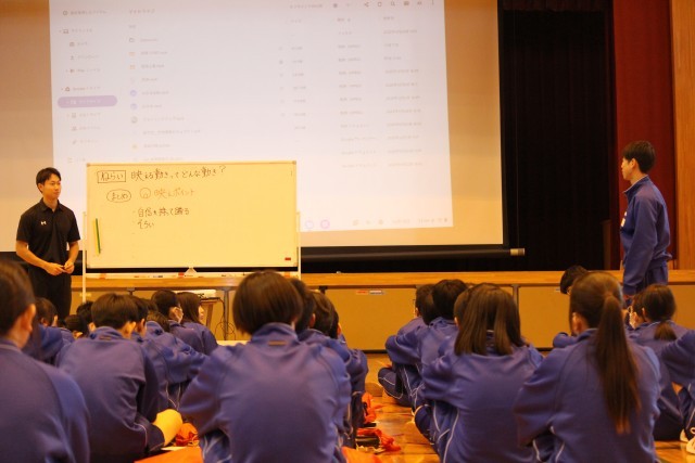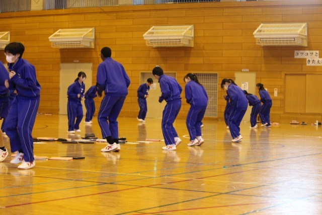 昨日、2年生の保健体育で研究授業が行われました。単元は「ダンス」です。本時のねらいは、「グループ内での発表を通して、仲間やグループの良さや出来栄えを伝え合おう」というものでした。担当教諭の自作動画を視聴し、みんなでウォーム・アップです。グループ活動では、規定部分の確認をしながら、互いに動きを見せ合い、伝え合う活動を行いました。最後は、どのグループも運動の取り組み方を工夫しながら、グループの「よさ」を表現できるダンスに上達していました。