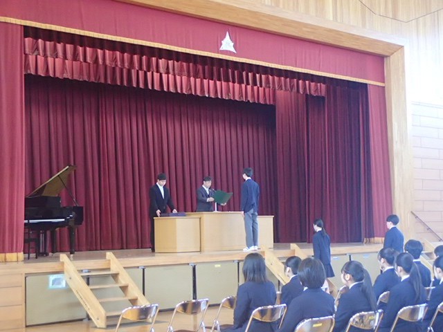 本日、2校時、3校時で卒業式予行を行いました。3年生はもちろんですが、1・2年生も立派な態度で臨んでいました。充実した終わり方の後には、素敵な未来が待っています。卒業と修了は、新しいステージへの儀式でもあります。3月13日(金)の第54回卒業証書授与式を素晴らしいものにしていきましょう。