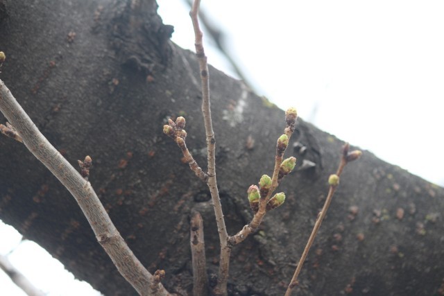 大原中校門付近のさくらのつぼみがさらに大きくなりました。間もなく開花しそうです。