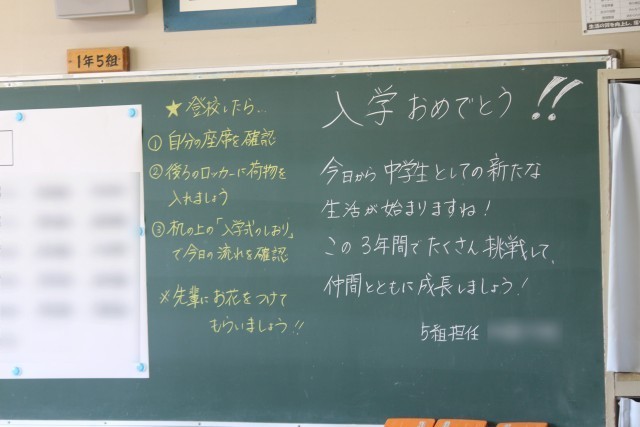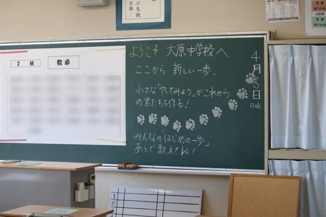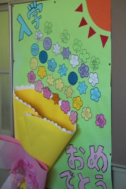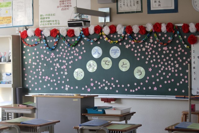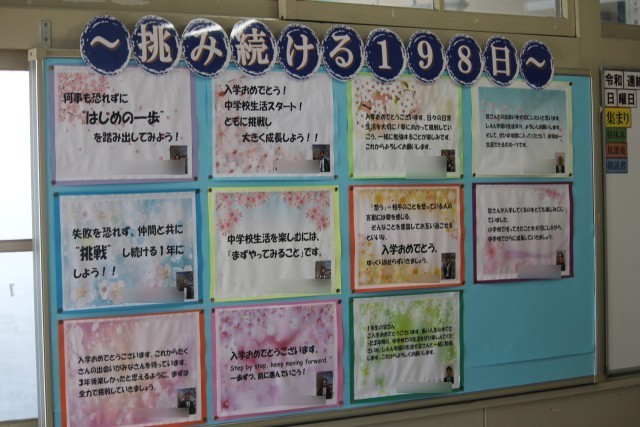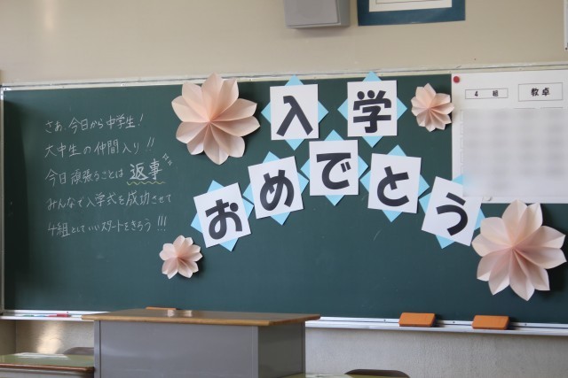 写真は、入学式当日の1年生・しえん学級の教室の様子です。ホームページ上で写真をクリックしていただくと、4枚目以降の写真がご覧いただけます。
