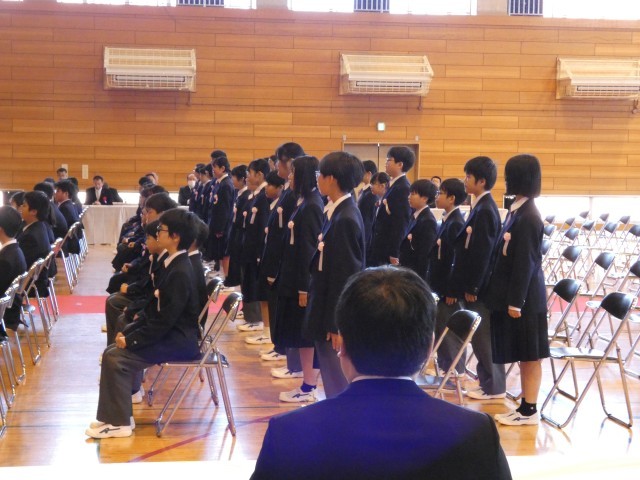 大山市長ご臨席のもと、156名の新入生を迎え、第55回入学式及び第1学期始業式を執り行いました。4月は「あこがれ」を見つける月であり、誰もが輝きと躍動感に満ちている月です。一人一人が希望の持てる令和8年度の学校生活のスタートです。