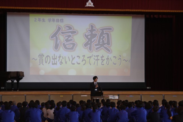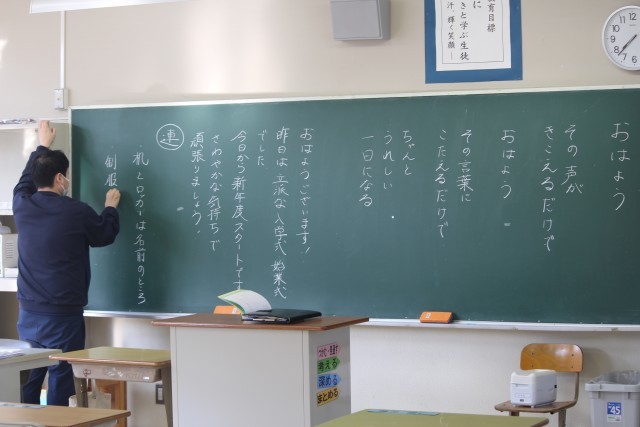写真は、朝の教室の先生方からのメッセージと、2、3年生の集会の様子です。ホームページ上で写真をクリックしていただくと4枚目以降の写真がご覧いただけます。