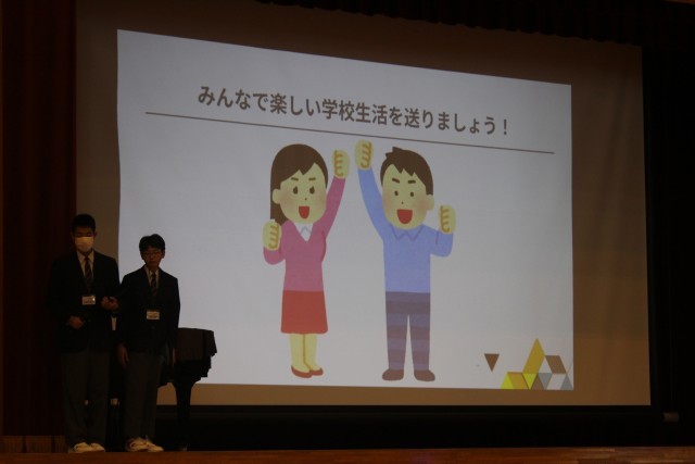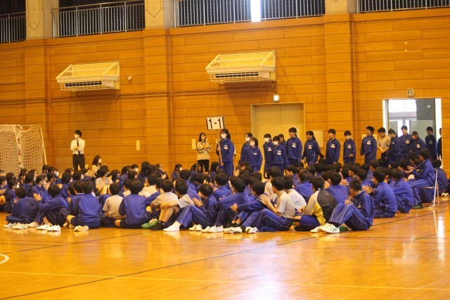 本日5校時に「新入生歓迎会」が行われました。生徒会本部の活動紹介、部活動紹介、体育祭・合唱祭のブロックのカラー抽選が行われました。1年生の態度も立派でしたが、2、3年生の「静」への切り替えも見事でした。中学校は、自分の可能性を拡げ、「よさ」を伸ばしていくところです。「4月のスタート」は、変化する絶好の機会です。「なりたい自分になるために」1年後の自分をイメージしてみましょう。