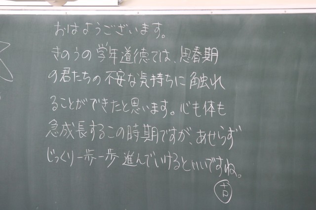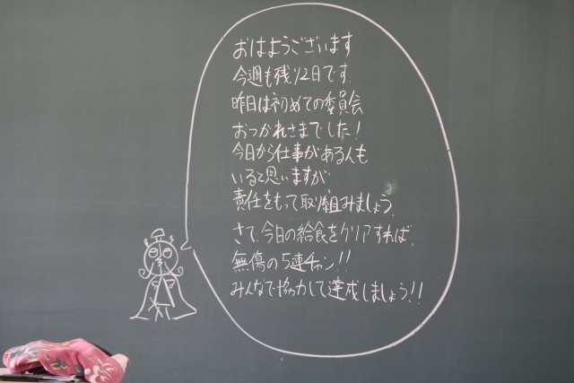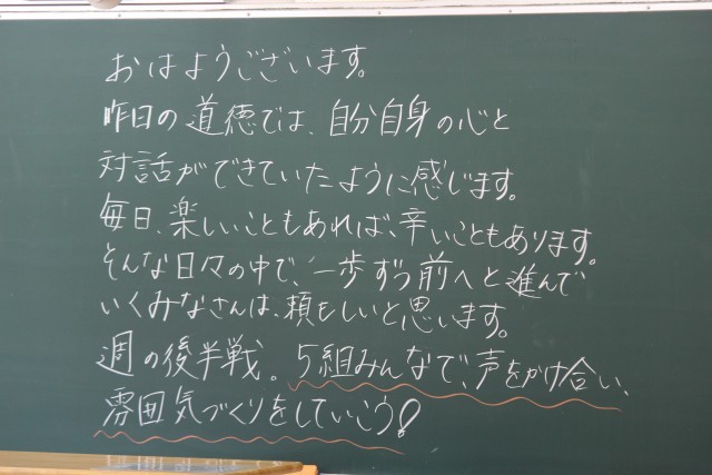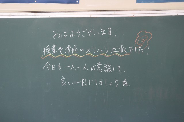朝の黒板のメッセージから、昨日の様子が垣間見えます。授業も本格的に始まりました。ひとつひとつ頑張って行きましょう。ホームページ上で写真をクリックしていただくと4枚目以降の写真がご覧いただけます。