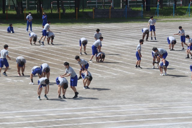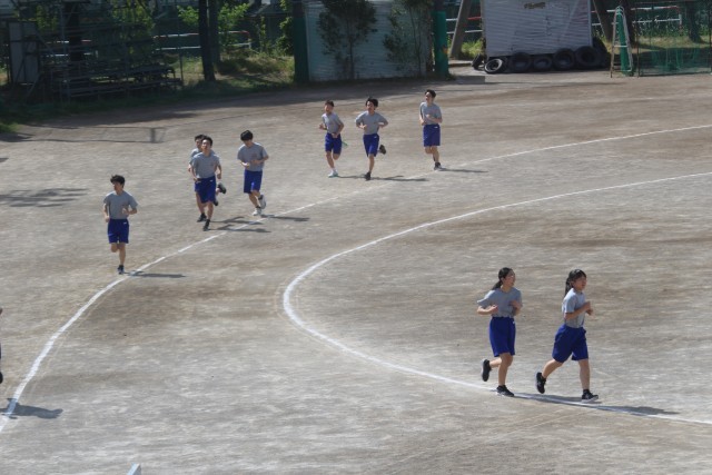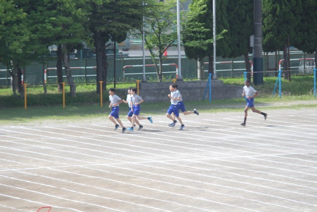 3年生は体育で持久走を行いました。生徒のみなさんは一生懸命に走っていました。ここのところ天候や気温の変化が激しいです。体調管理をしっかりとし、無理をせず、授業に取り組みましょう。