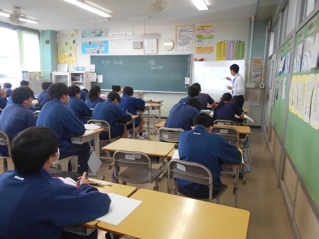 令和7年11月25日(火) 公開日 2025/11/25 更新日 2025/11/25 今日の八條中学校 11月最終週 1年生はインフルエンザなどによる体調不良者多数のため、出席確認後に下校、今週いっぱい学級閉鎖としました。体調管理を優先して、家庭で過ごしてください。写真は、3年生(数学)、しえん学級(音楽)、2年生(体育)の授業の様子です。2,3年生、しえん学級の皆さんも感染予防などに努めてください。
